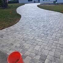 Installation of interlocking concrete pavers for driveways, patios, and walkways.